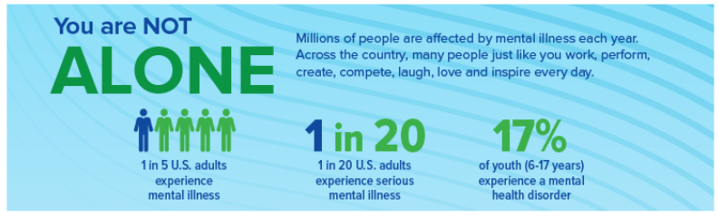 • 1 in 20 U.S. adults experience serious mental illness each year