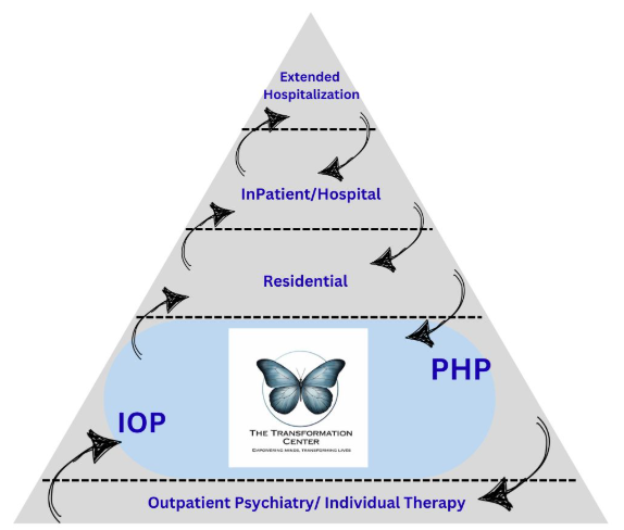 Who it’s for: Individuals with moderate to severe symptoms who need structured daytime care but can return home at night. (Eg: Passvie suicidal ideations, panic attacks)
